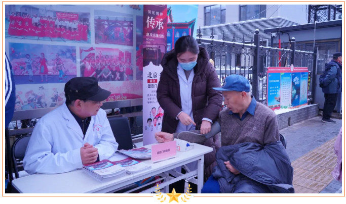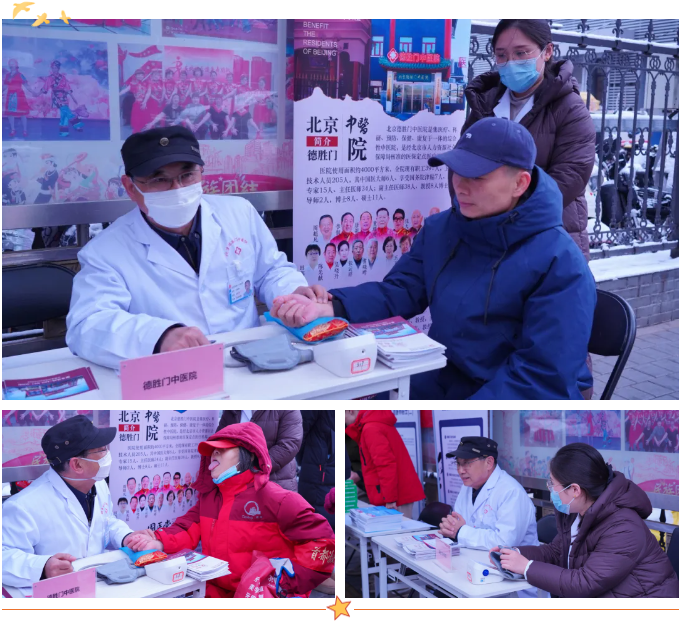 活动当天,一场春雪悄然降临京城,气温骤降,寒意袭人。然而,恶劣的天气并未阻挡医护人员服务社区居民的热情。北京德胜门中医院中医科吴斌儒医生带领义诊团队早早来到现场,迅速布置妥当并投入工作。尽管双手被冻得通红,身体在寒风中微微颤抖,但他们脸上的笑容依旧温暖,服务热情丝毫未减。